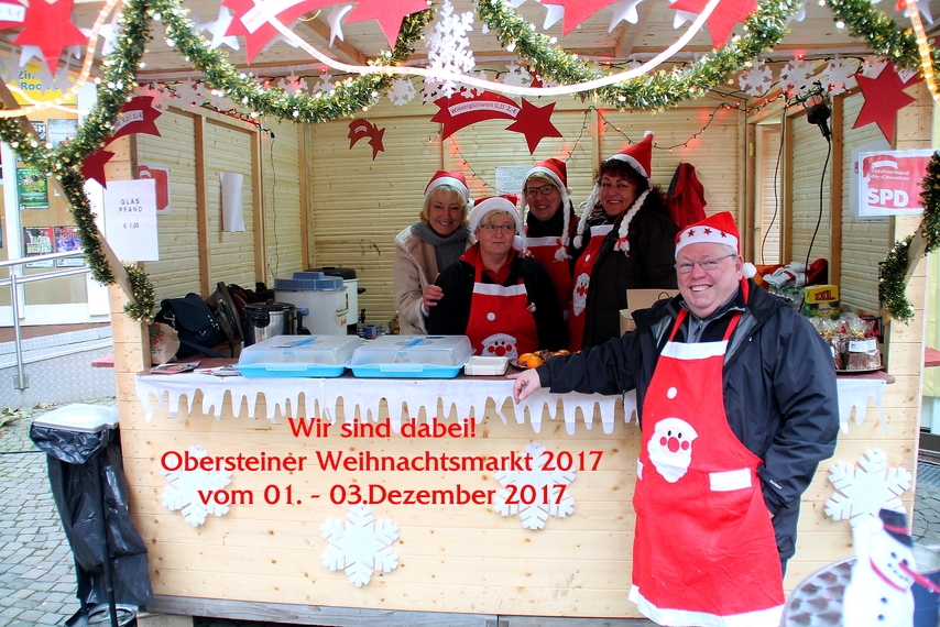 Der SPD Stadtverband nimmt in Folge im 3 Jahr mit einem Stand teil. Der Markt erstreckt sich in der Altstadt des Stadtteils Oberstein, vom Marktplatz auf den Vorplatz des Deutschen Mineralienmuseums und von dort ein Stück über die Ausstraße wieder zum Marktplatz. Viele Stände im weihnachtlichem Ambiente, bieten ihre Basteleien und Waren an. Auch für das leibliche Wohl ist gesorgt, über den Glühwein bis zum Kinderpunsch, vom Gegrillten, Backfisch, Suppe, Löffelgulasch und Waffeln. Gegen Abend kann man über den beleuchteten Weg auch den Weihnachtsmarkt am Neuen Schloß besuchen. Verschiedene Gruppen umranden den Weihnachtsmarkt an allen drei Tagen mit einem reichhaltigen Programm. Am Sonntag, den 03.Dezember wir der Weihnachtsmann in einer Sprechstunde von 15.00 – 17.00 Uhr den Kindern die Gelegenheit geben ihr wünsche zu äußern und verteilt hierbei eine kleine Gabe.