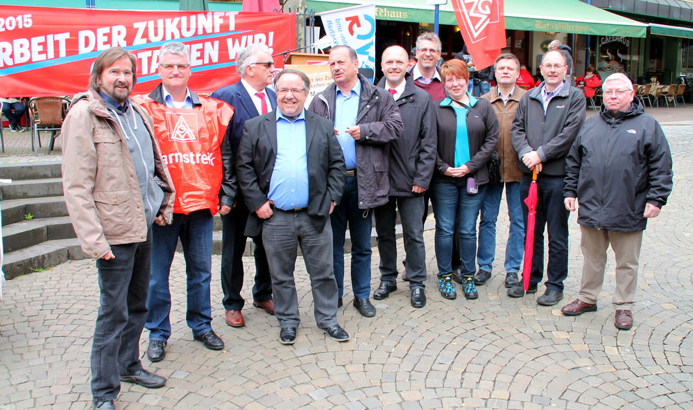 Auch in diesem Jahr nahmen wieder etliche SPD-Mitglieder an der Maikundgebung auf dem Marktplatz Oberstein teil. Es war diesmal erneut eine aufsehenerregende Veranstaltung unter Federführung der IG-Metall, die, nach einem gemeinsamen Protestmarsch vom DGB Haus in der Wilhelmstrasse zum Marktplatz, den ausgezeichneten Rednern Aufmerksamkeit leisteten. Bürgermeister Friedrich Marx sowie IG-Metall-Bevollmächtigter Edgar Brakhuis und Winfried Ott (über 25 Jahre Geschäftsführer TBS) waren als Hauptredner mit deutlichen Worten aktiv. Alois Nolde (Kreisvorsitzender DGB) und sein Kollege Stefan Worst (ebenso SPD-Stadtratsmitglied I-O) moderierten die Kundgebung. Unser Kreisvorsitzender, MdL Hans-Jürgen Noss, ist ständiger Begleiter der Idar-Obersteiner Kundgebung. Von Seiten des SPD-Stadtverbandes Idar-Oberstein waren Elisabeth Jost, Jürgen Hiebel, Jörg Petry, Thorsten und Manuela Hosser sowie Jupp Mähringer anwesend, die einvernehmlich die Veranstaltung als sehr gelungen bezeichneten.