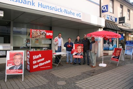 Schon frühzeitig am Samstagmorgen, 12.09.2009, platzierte der SPD-Stadtverband den ersten Infostand in der Obersteiner Fußgängerzone.