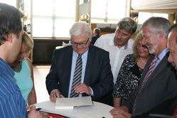 Zum Abschluss signierte Steinmeier T-Shirts, Plakate sowie Bücher von Axel Redmer. Unser Dank gilt Landrat Axel Redmer für das Zustandekommen der Begegnung mit diesem erfolgreichen Politiker.