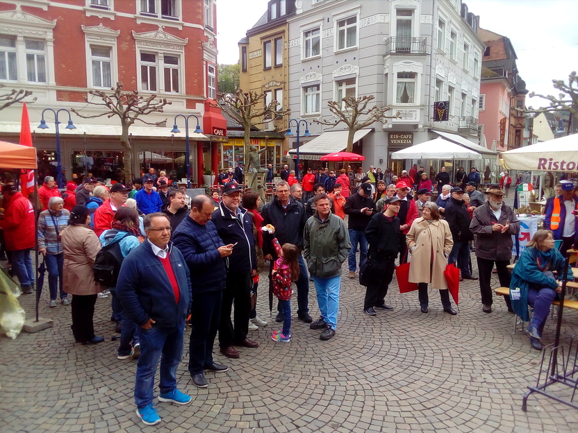 Auch in diesem Jahr nahmen wieder etliche SPD-Mitglieder an der Maikundgebung auf dem Marktplatz Oberstein teil. Unter Ihnen befand sich der SPD-Bundestagskandidat Dr. Joe Weingarten, der vor genau zwei Tagen in Lahnstein auf einen hervorragenden 12. Platz in der Landesliste zur Bundestagswahl gewält worden war.