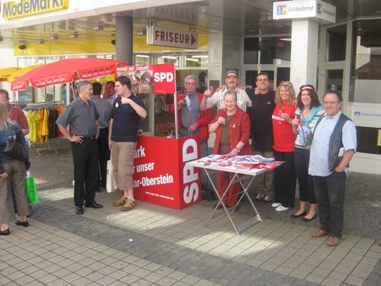 Der Wahlkampf in der Obersteiner Fußgängerzone fand für die Idar-Obersteiner SPD auf Höhe des Bekleidungsgeschäftes TAKKO am 23. Mai seine Fortsetzung.