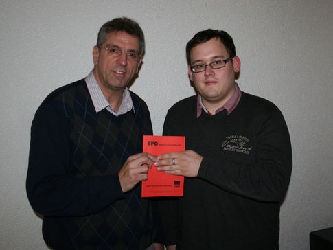 Sven Müller wurde als neues Mitglied vom SPD-Stadtverbandsvorsitzenden Jupp Mähringer begrüßt. Der 23-jährige Verwaltungsfachangestellte lebt gemeinsam mit seiner Freundin in Kirchenbollenbach. Den Weg in die SPD beschritt er zunächst über eine so genannte Gastmitgliedschaft. Letztlich ausschlaggebend war das Mitgliedervotum Ende letzten Jahres. Besonders imponierte ihm die Auseinandersetzung der Partei mit ihren Mitgliedern und die Akzeptanz des Ergebnisses.