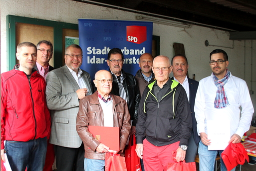 Nach einer kurzen Begrüßung erfolgten Mitgliederehrungen durch den Kreisvorsitzenden: Frank Forster, Christian Kuhn und Christian Knuth wurden für jeweils 10-jährige Mitgliedschaft in der SPD ausgezeichnet. Ein halbes Jahrhundert lang Mitglied in der SPD ist der ehem. Bürgermeister Bernhard Becker. Der Rekordwert in diesem Jahr blieb Gerhard Willrich vorbehalten, der sage und schreibe seit 65 Jahren der Partei angehört.