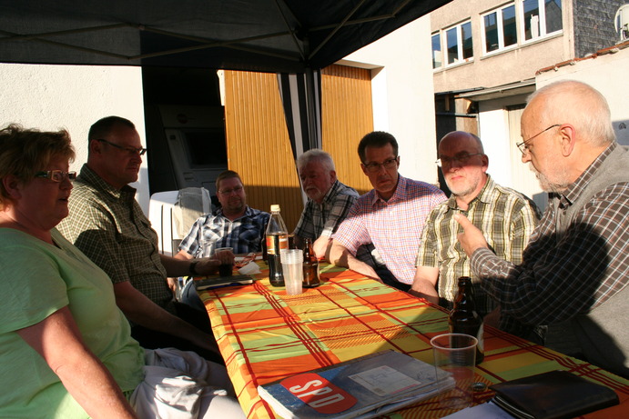 Volker Poes, Vorsitzender der SPD-Stadtbezirksgruppe Nahbollenbach, überraschte seine Mitstreiter in angenehmer Weise mit einem Imbiss vor Beginn der Sitzung. Es gab delikate Würstchen vom Grill. In Anwesenheit des Stadtverbandsvorsitzenden Jupp Mähringer und des Geschäftsführers Rainer Löv zog Poes ein Resümee über zuletzt durchgeführte Aktionen. Großes Lob gab es dabei für die Aktivitäten der Offenen Gruppe Nahbollenbach, die die SPD-Gruppe mit einer Spende von 100 € unterstützt hatte, um Arbeiten wie z.B. die Errichtung des Gedenksteins zu Ehren von Paul Lang weiterhin zu ermöglichen. Zudem erledigten die Mitglieder der Gruppe während des Hexenfeuers am 30.04.2013 in bewährter Tradition den Getränkeverkauf. Es wurden schließlich viele Anregungen geäußert, die die beiden Vorstandsvertreter nach zweistündiger Sitzung mit ins Gepäck nahmen für weitere Beratungen.