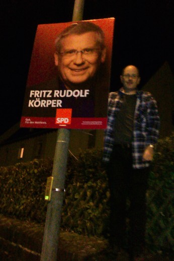 Thorsten Hosser glänzt mit Fritz Rudolf Körper während des Bundestagswahlkampfes, hier am Sonntag 15.09.13